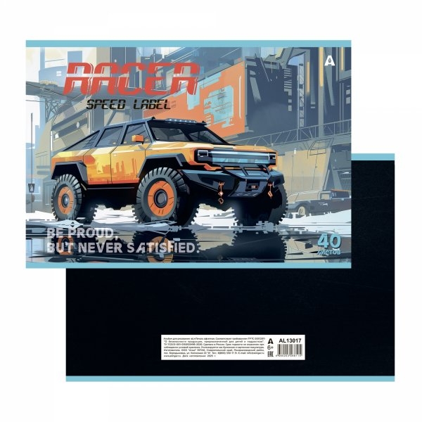 Альбом для рисования А4 40л., Alingar, на скрепке, мелованный картон (стандарт), 100 г/м2, "Внедорожник", 2...