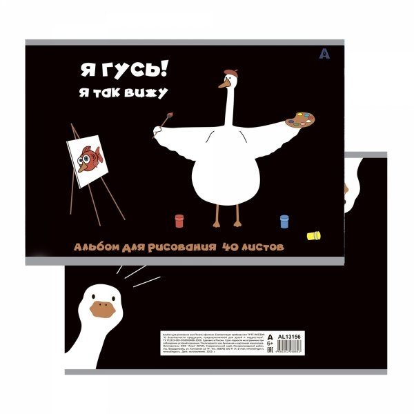 Альбом для рисования А4 40л., Alingar, на скрепке, мелованный картон (стандарт), 100 г/м2, "Гуси", 2 дизайна...