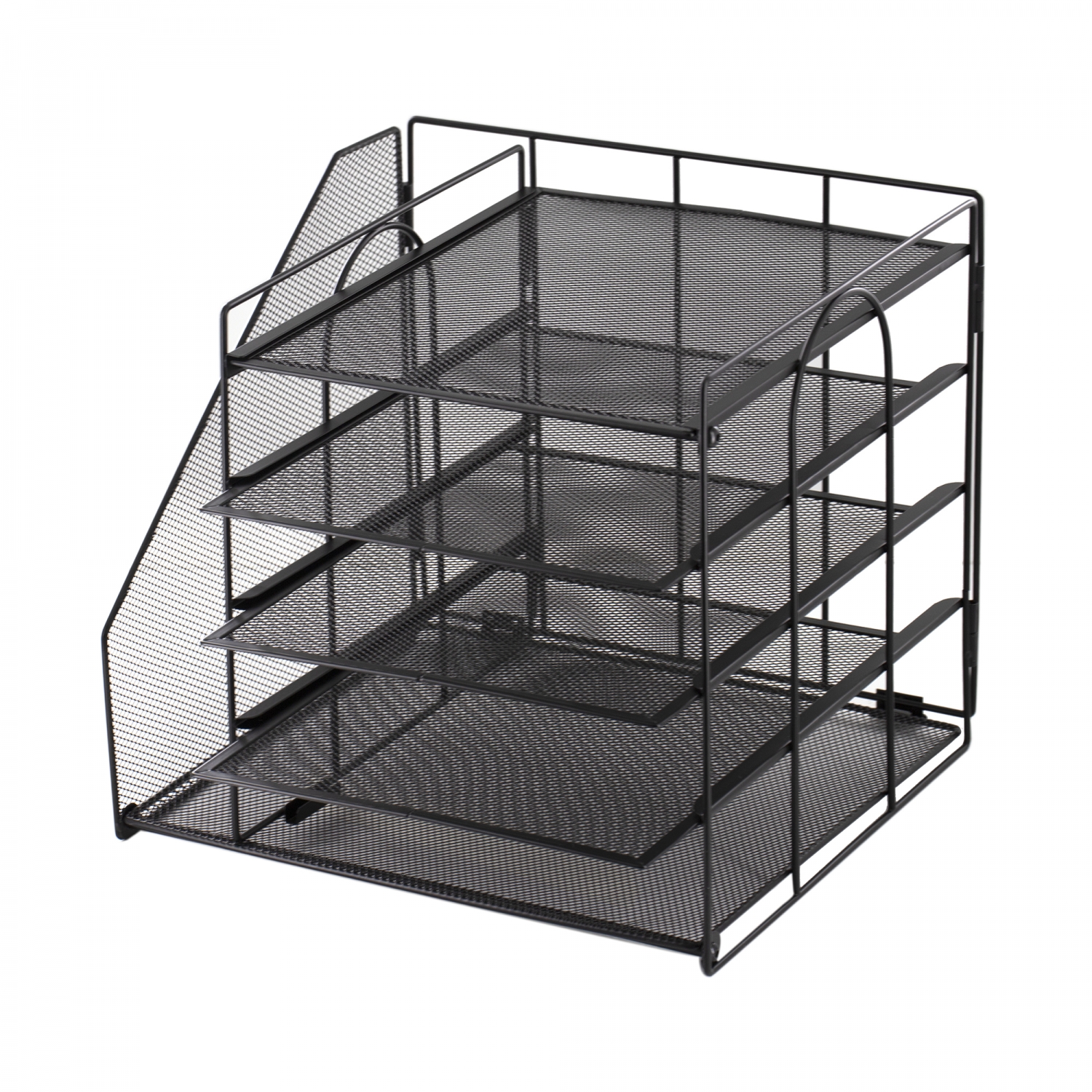 Лоток для бумаг горизонтальный, сборный, секционный Alingar, 4 отделения, металл, черный