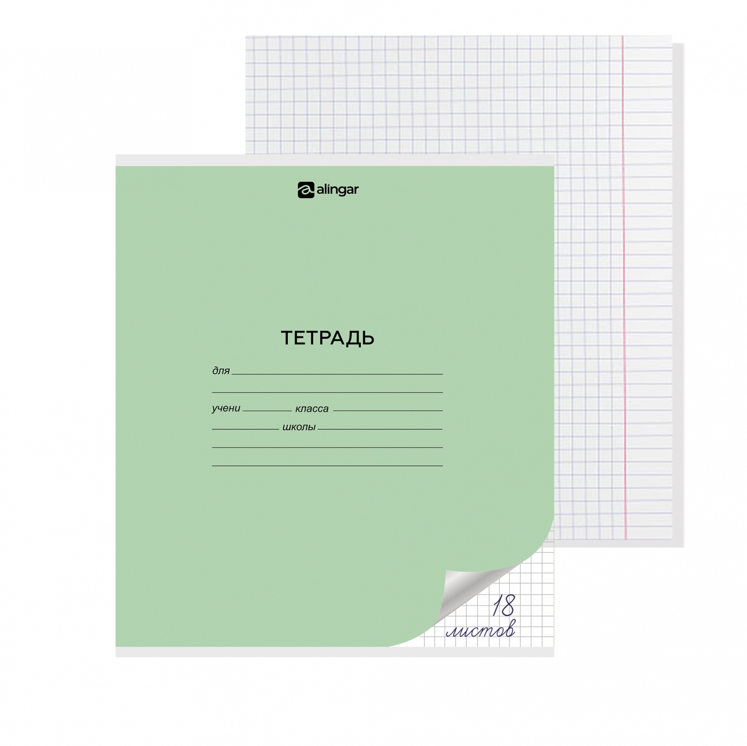 Тетрадь 18л., клетка, Alingar, скрепка, блок офсет, 100% белизна, мелованный картон (стандарт), "Зелёная"