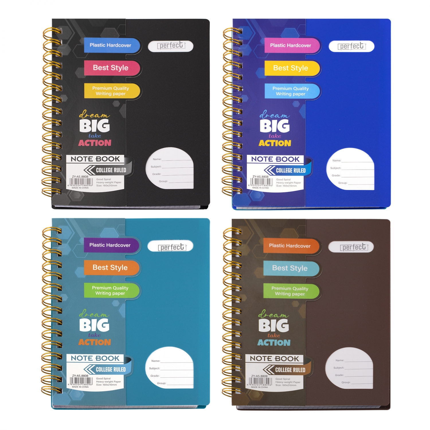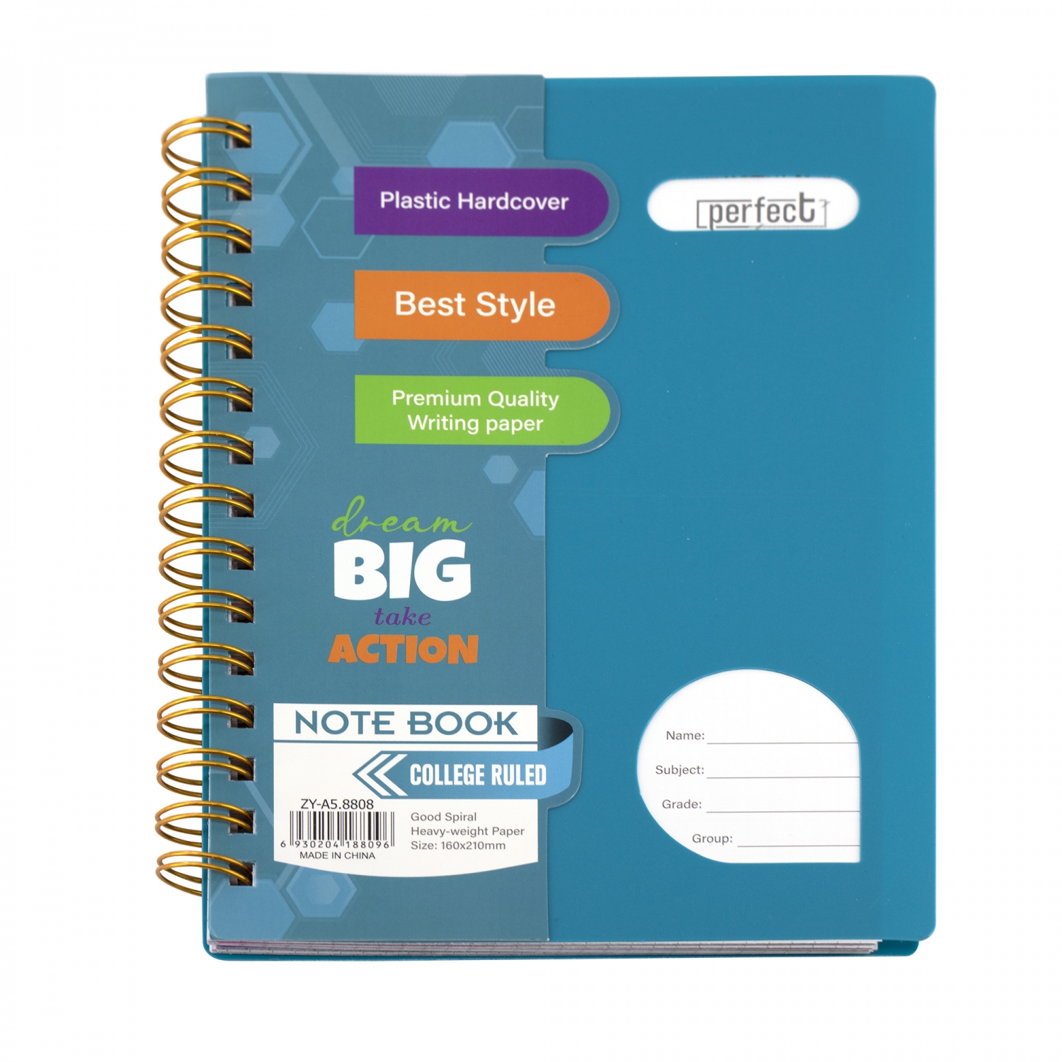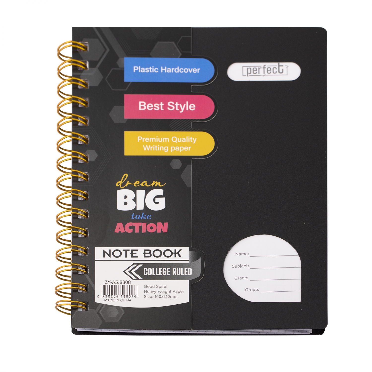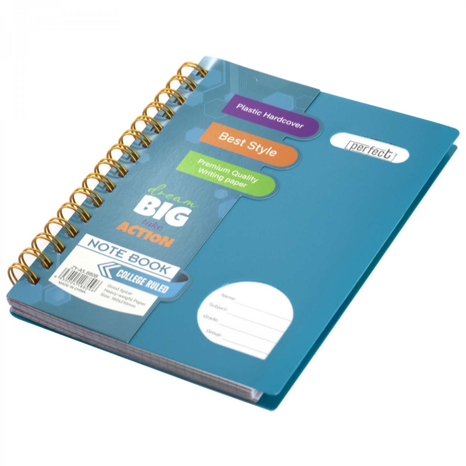 Тетрадь 120л., А5, клетка, Alingar "Colledge ruled", гребень, пластиковая обложка с информ окнами, цветные...