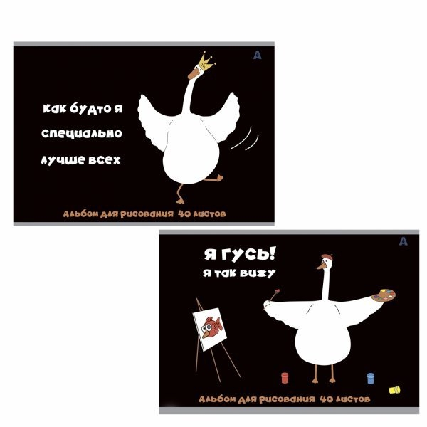 Альбом для рисования А4 40л., Alingar, на скрепке, мелованный картон (стандарт), 100 г/м2, "Гуси", 2 дизайна...