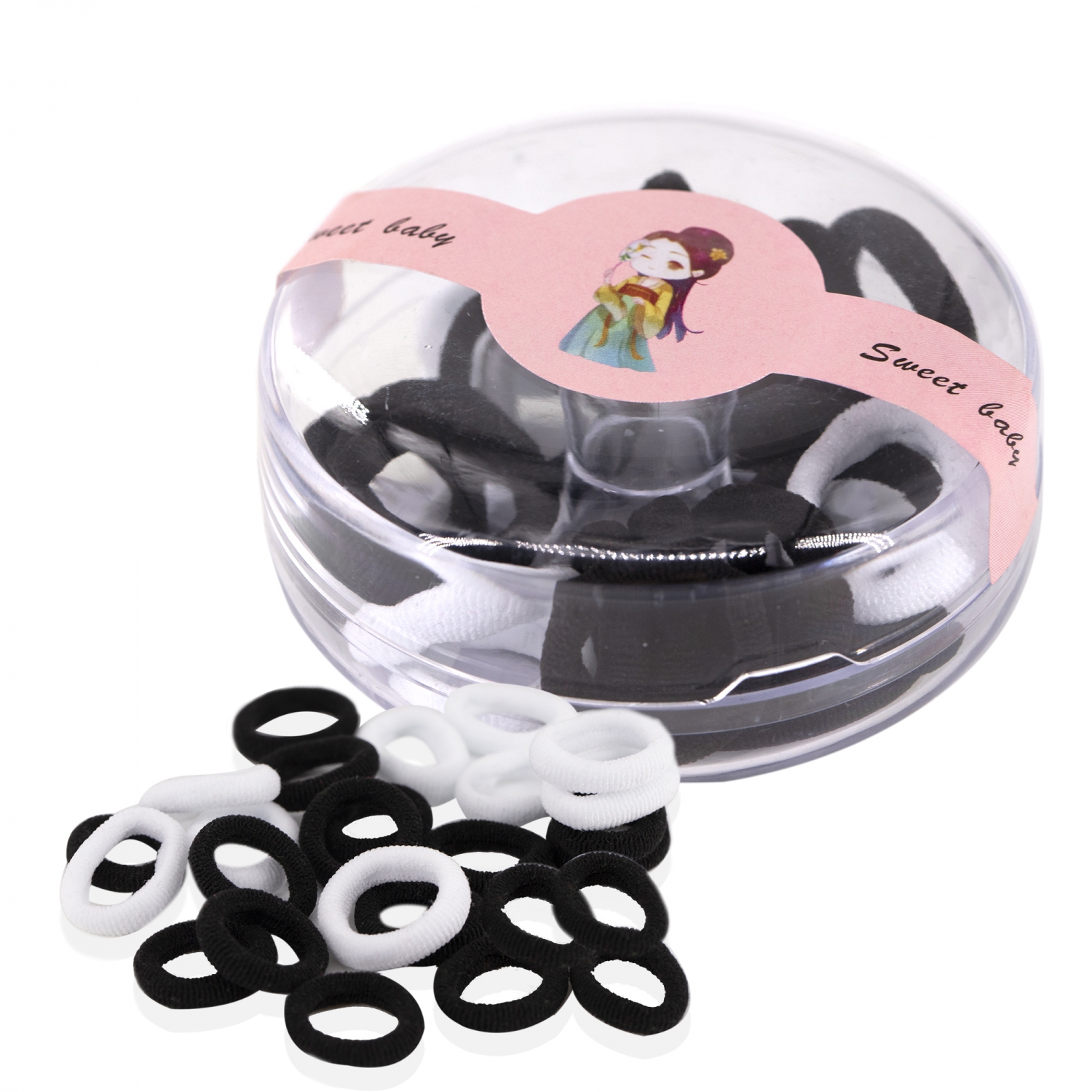 Резинки для волос Alingar, d 20 мм, черный и белый цвет, мини, круглый контейнер, 12 шт/уп