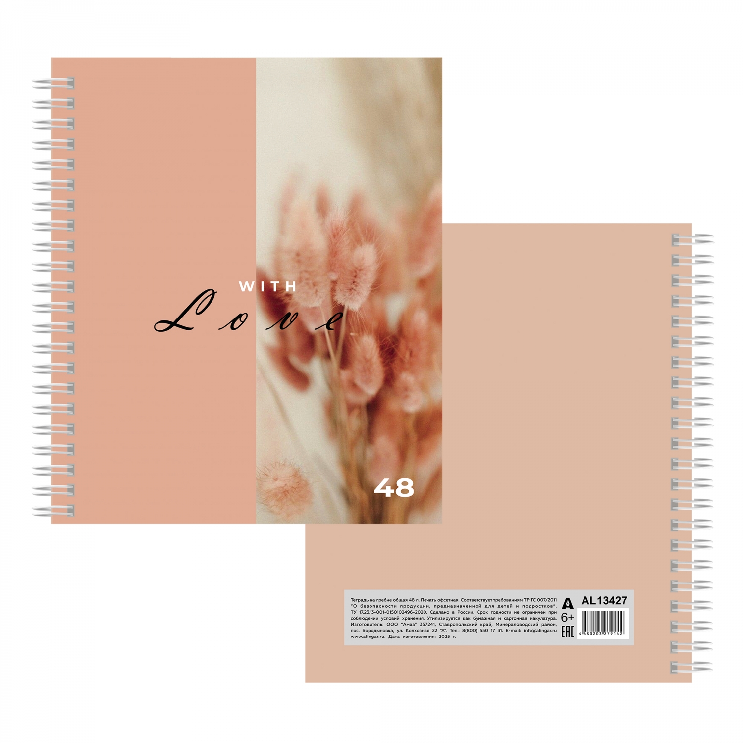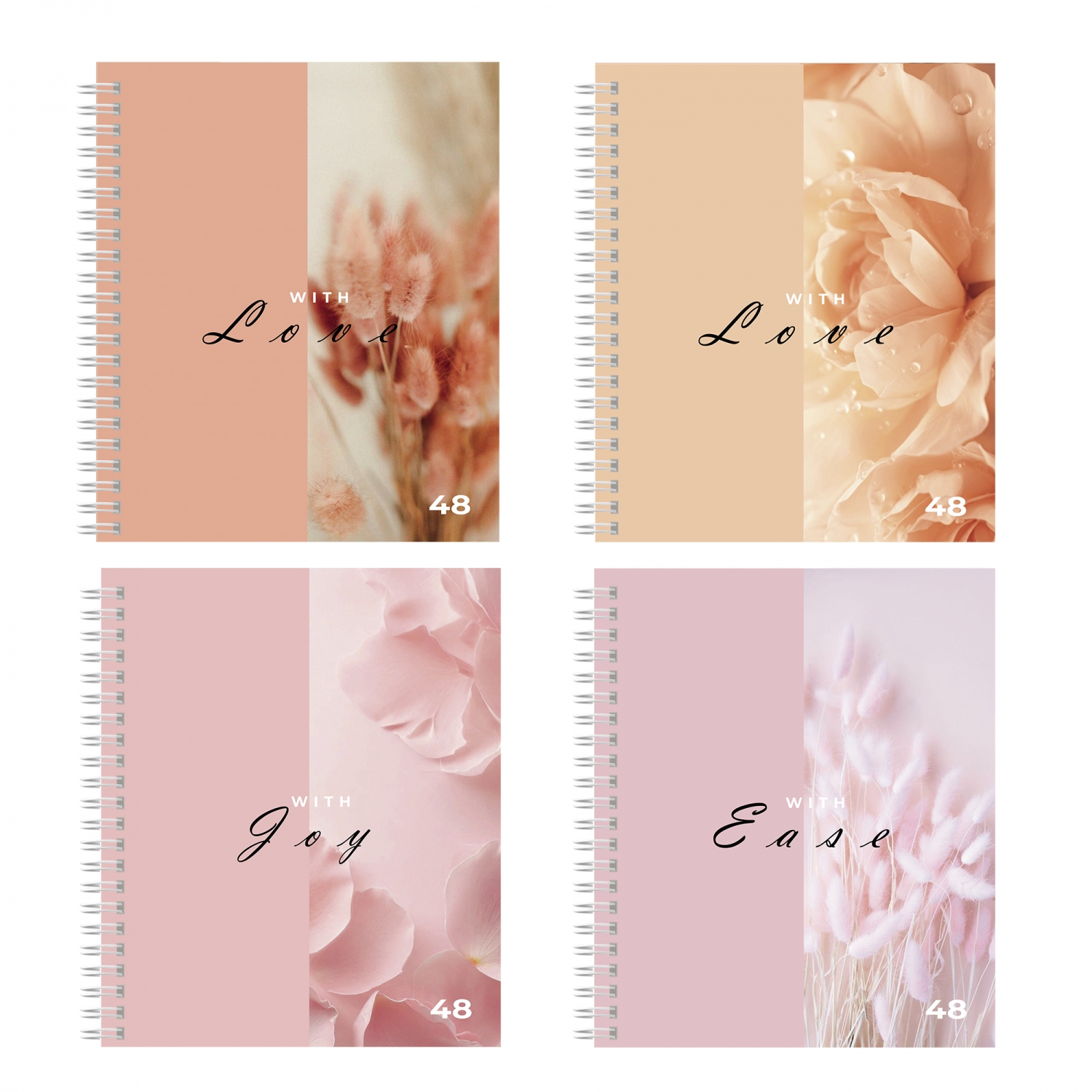 Тетрадь А5 48л., клетка, Alingar, гребень, блок офсет, мелованный картон (стандарт), "Нежность", 4 дизайна в...