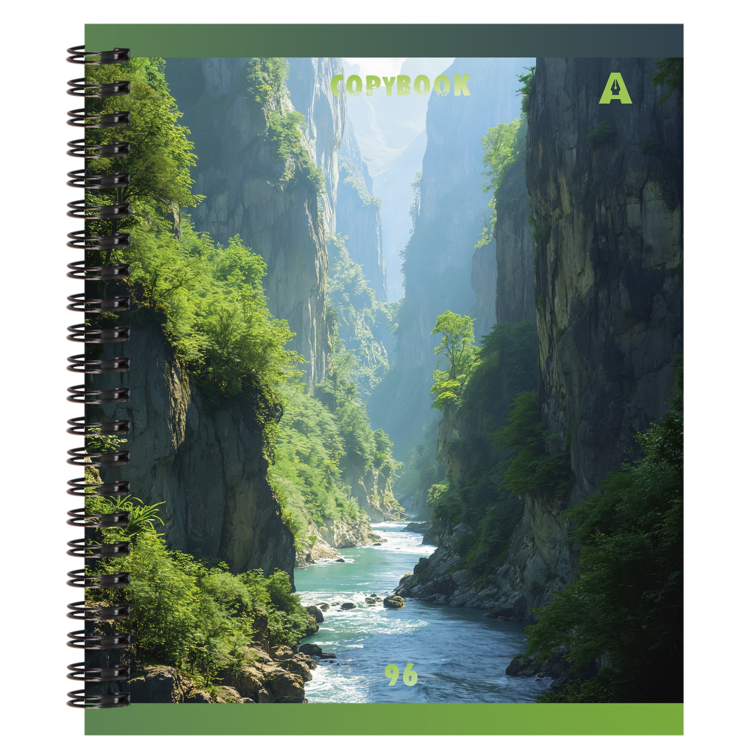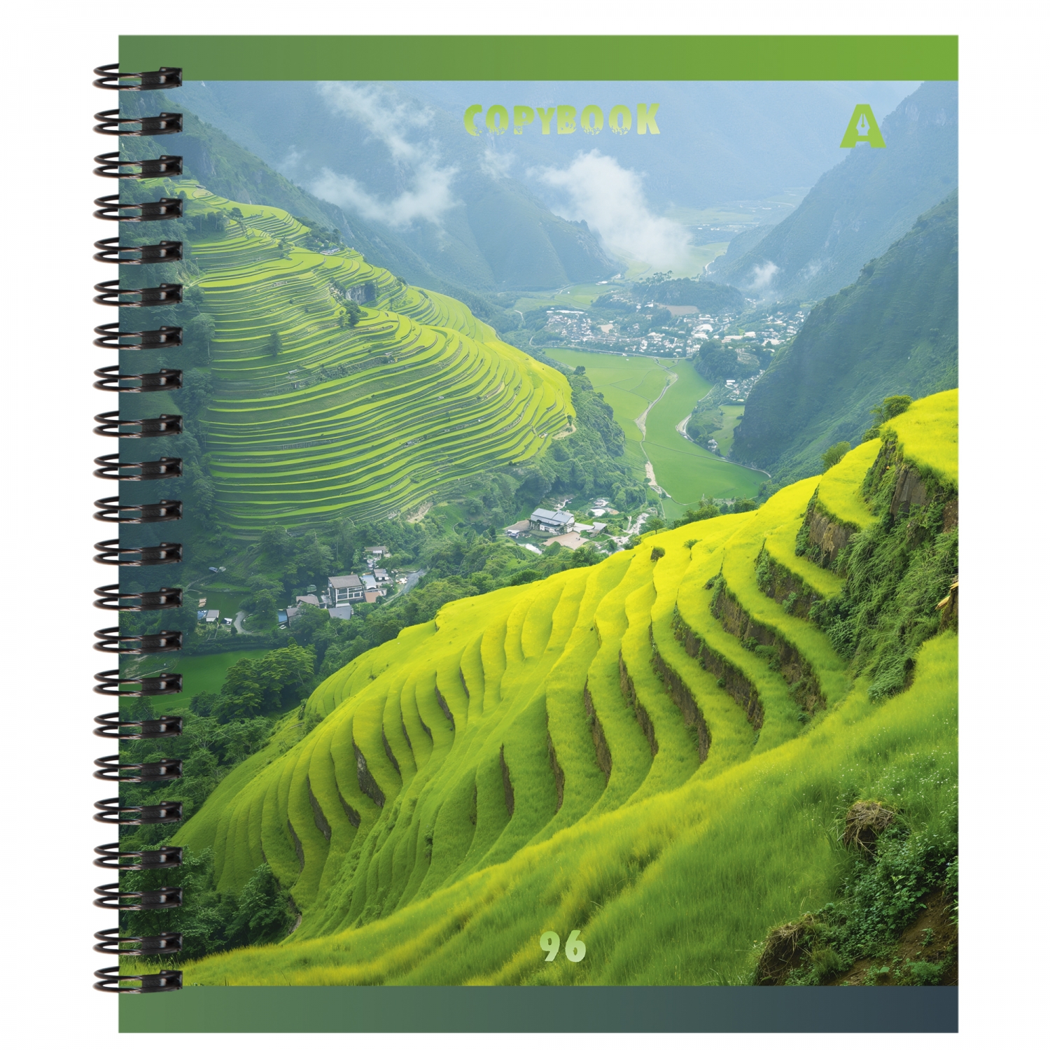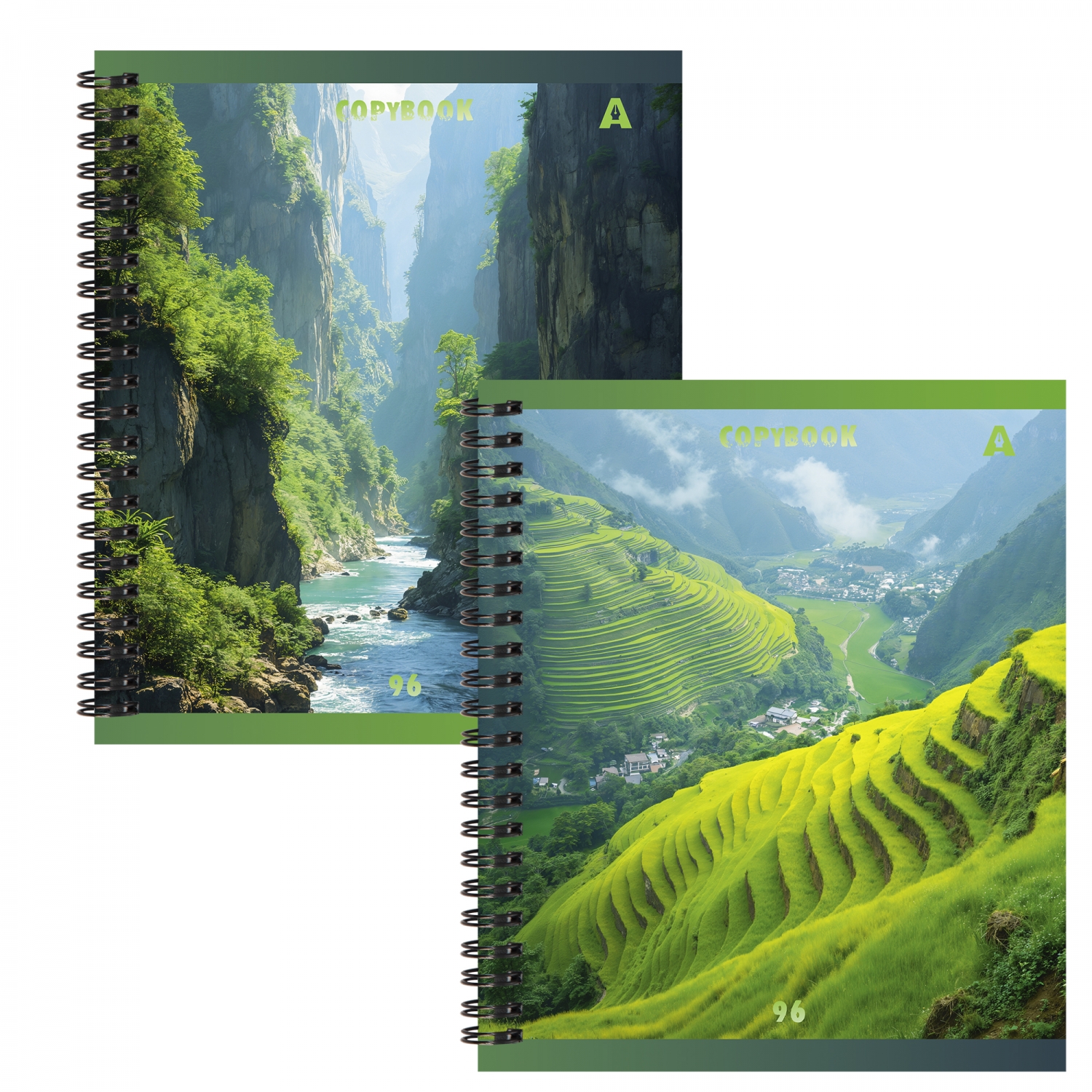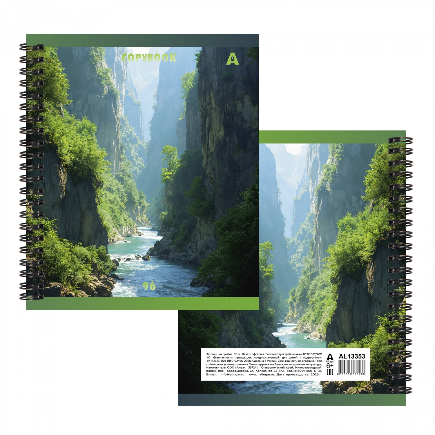 Тетрадь 96л., А5, клетка, Alingar, гребень, блок офсет, мелованный картон, "Пейзажи", 2 дизайна в пленке т/у