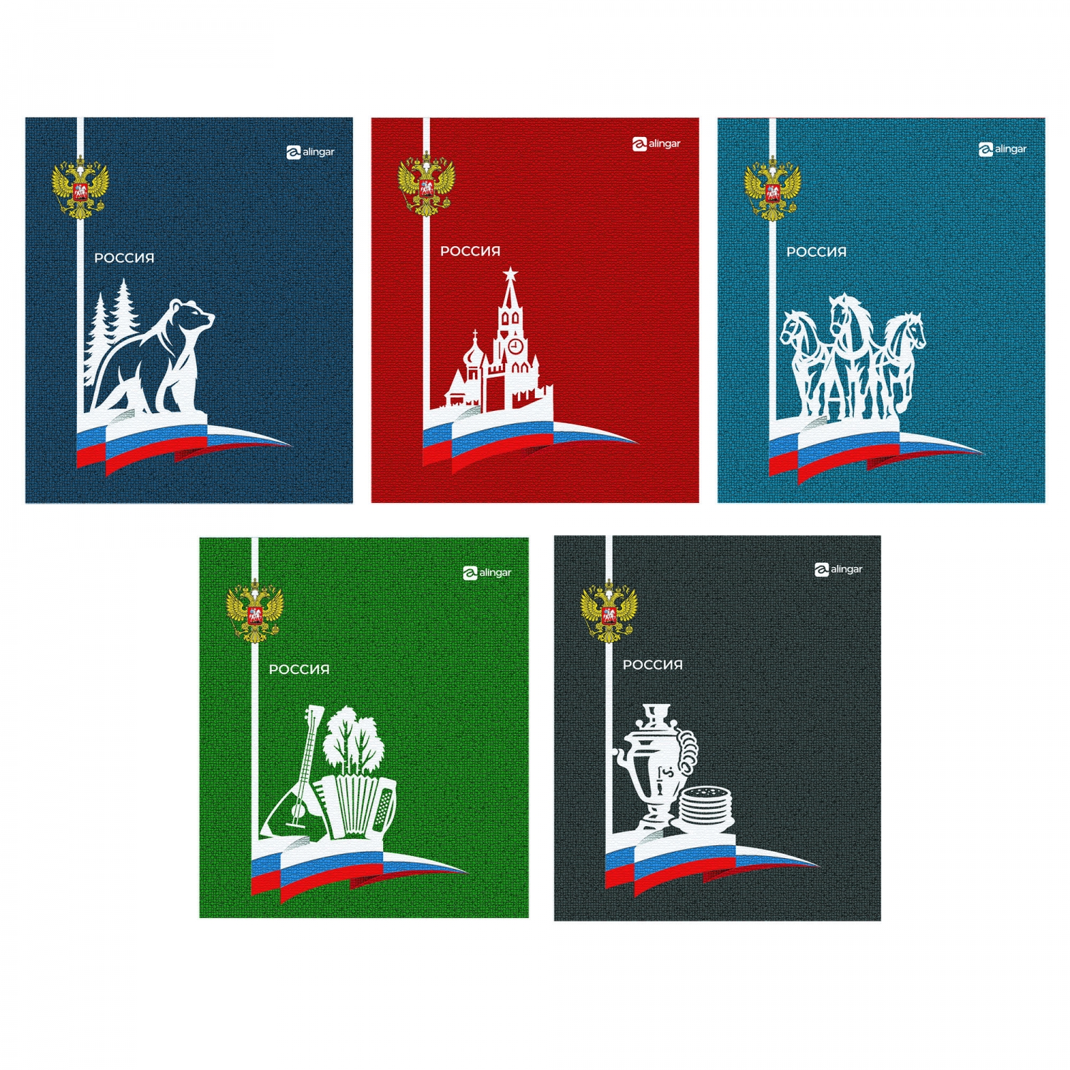 Тетрадь 48л., А5, клетка, Alingar "Россия", скрепка, мелованный картон (стандарт), блок офсет, 4 дизайна в...