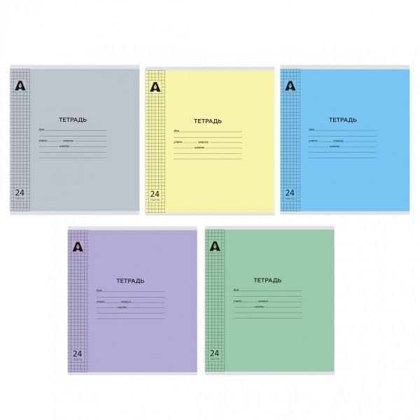 Тетрадь 24л., клетка, обложка пластик, Alingar, скрепка, блок офсет, 100% белизна, "Микс пастель", 5...