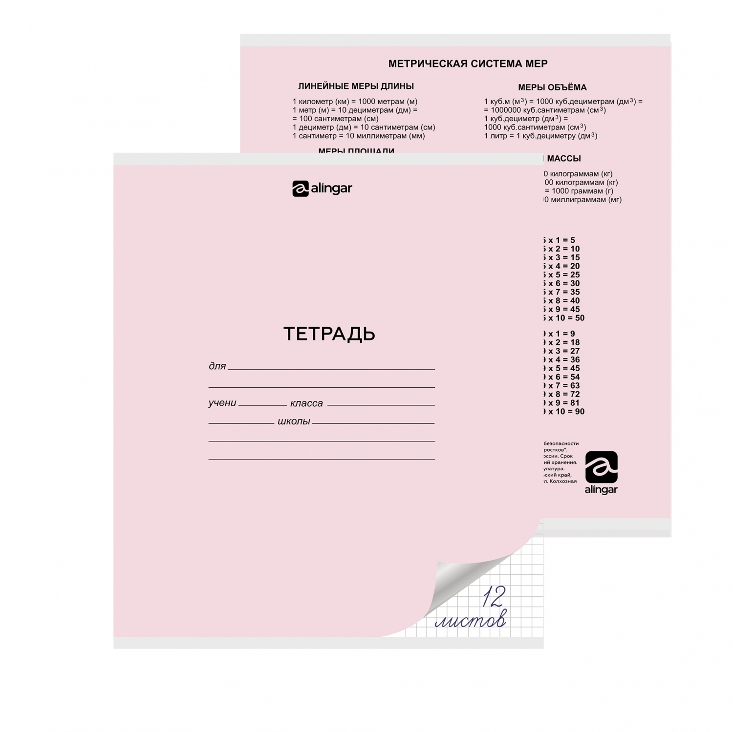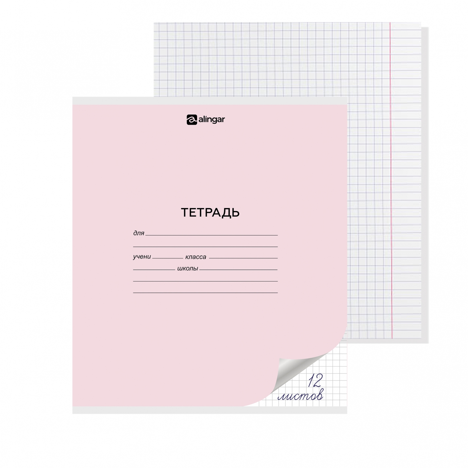 Тетрадь 12л., клетка, Alingar, скрепка, блок офсет, 100% белизна, мелованный картон (стандарт), "Розовая"