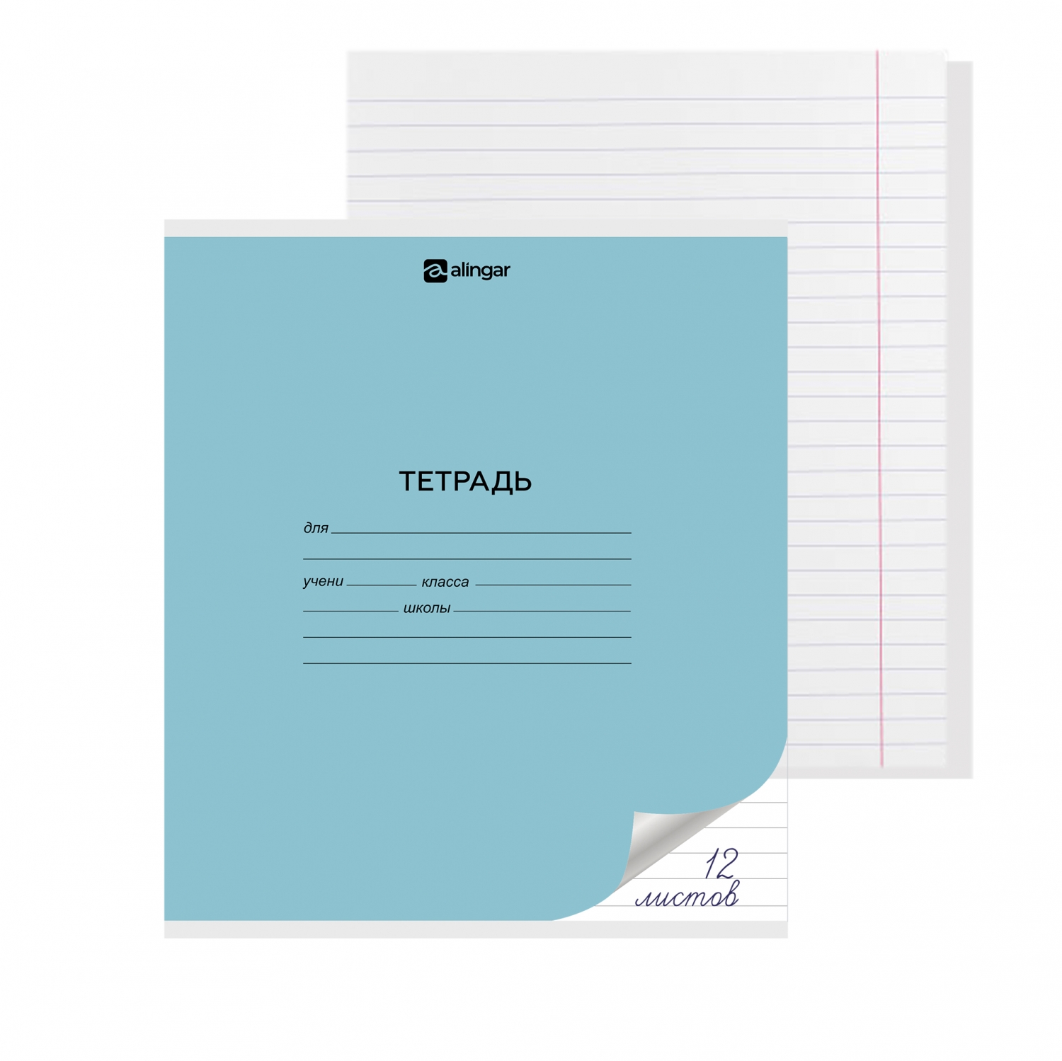 Тетрадь 12л., линия, Alingar, скрепка, блок офсет, 100% белизна, мелованный картон (стандарт), "Голубая"