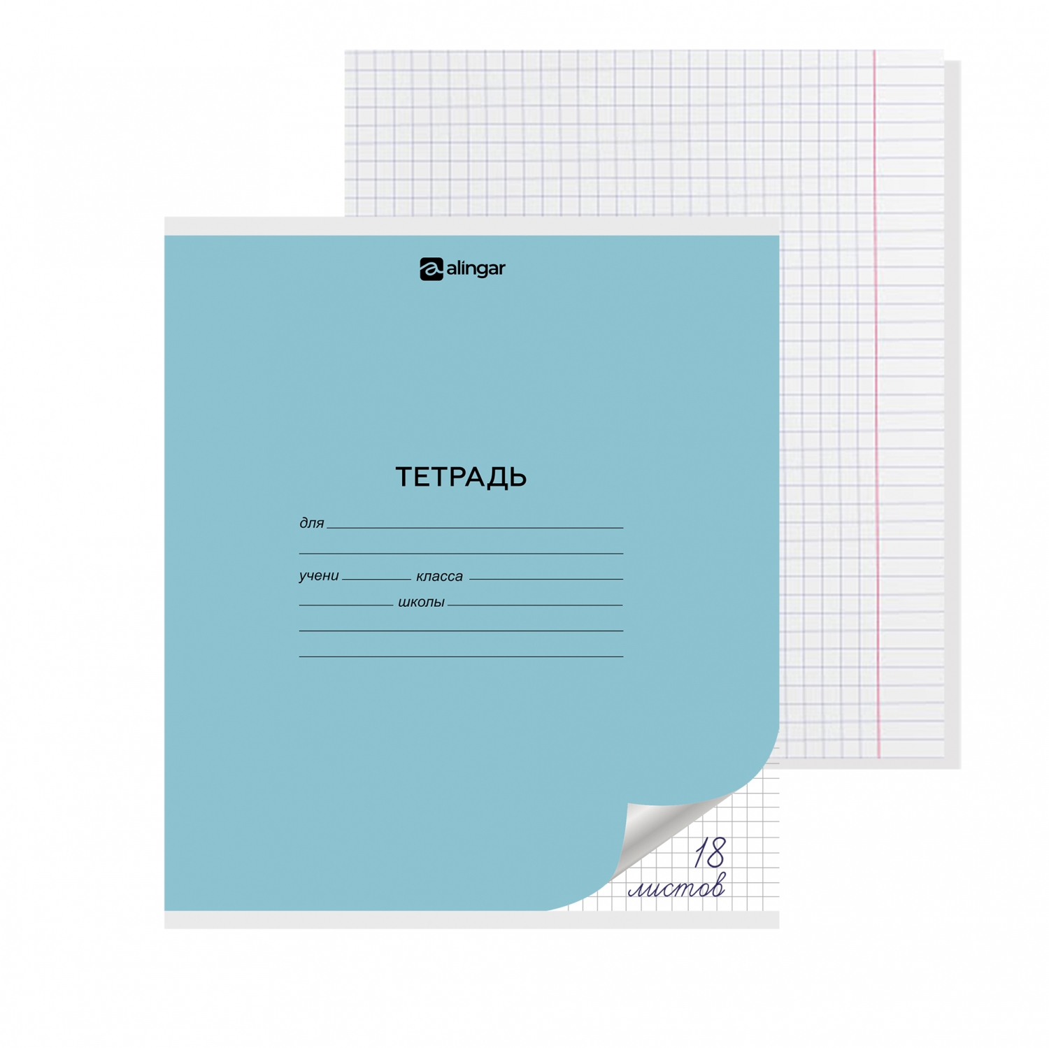 Тетрадь 18л., клетка, Alingar, скрепка, блок офсет, 100% белизна, мелованный картон (стандарт), "Голубая"