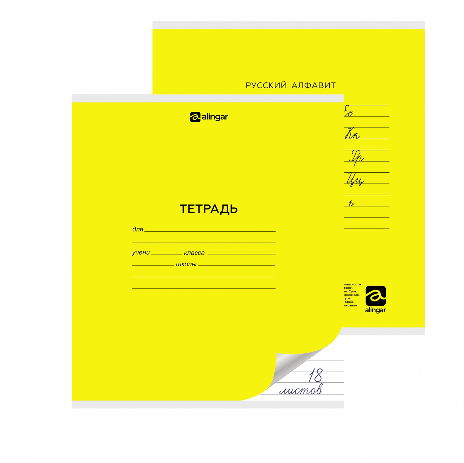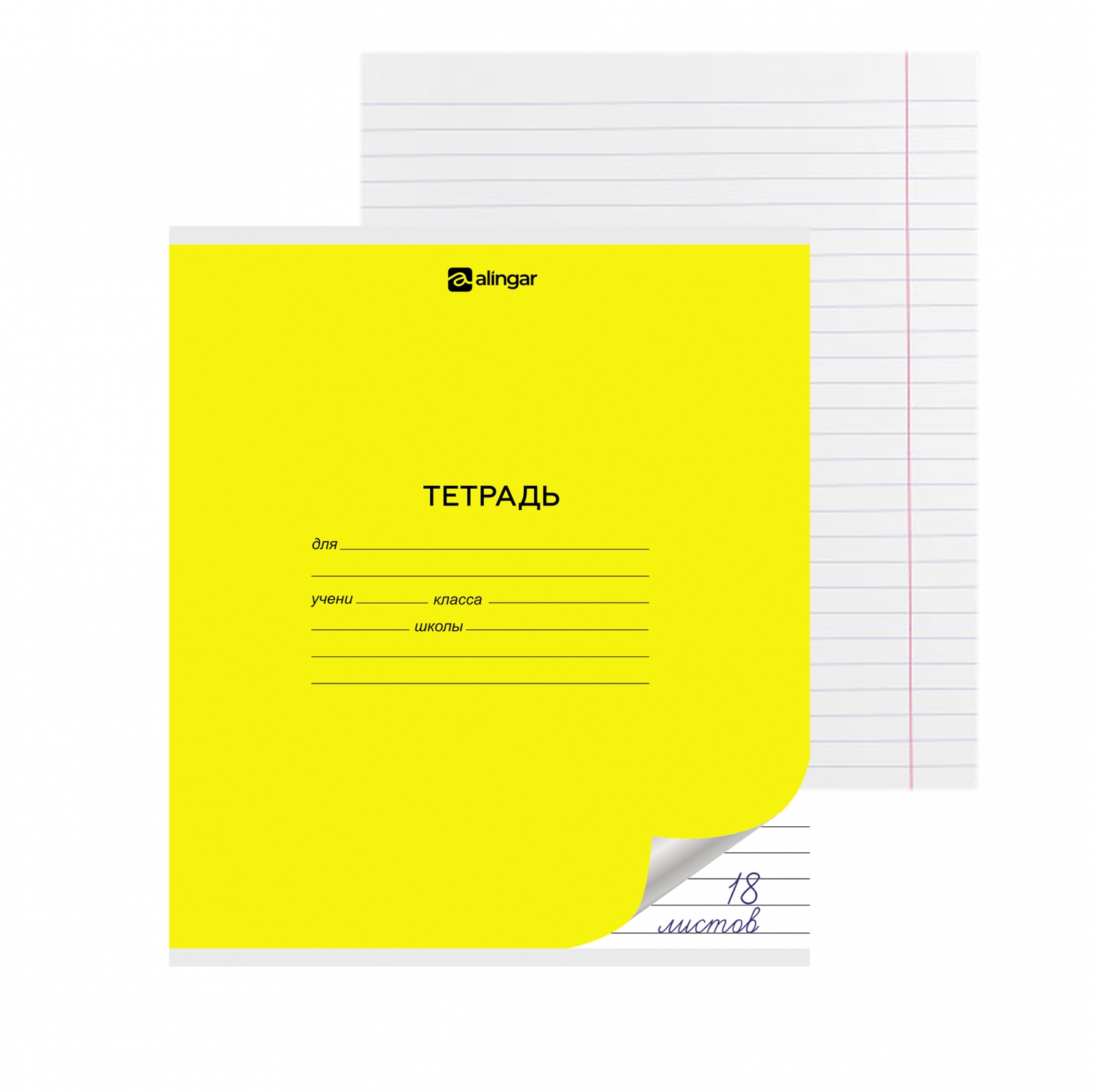 Тетрадь 18л., линия, Alingar, скрепка, блок офсет, 100% белизна, мелованный картон (стандарт), "Желтая"
