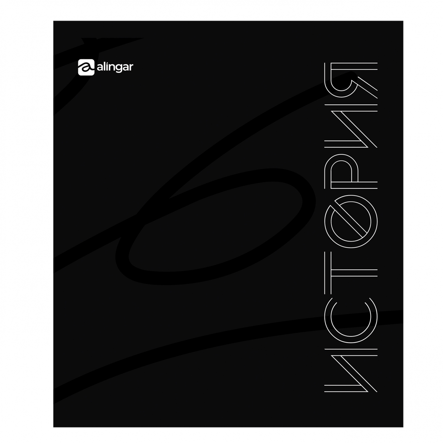 Тетрадь предметная "История" А5 48л., клетка, со справ. материалом, скрепка, мелованный картон (стандарт), блок офсет, Alingar "Предметы на чёрном"