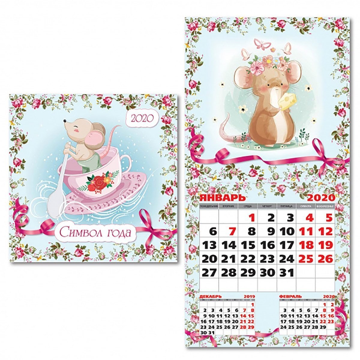 Календарь перекидной "Символ года рисованный" на скрепке