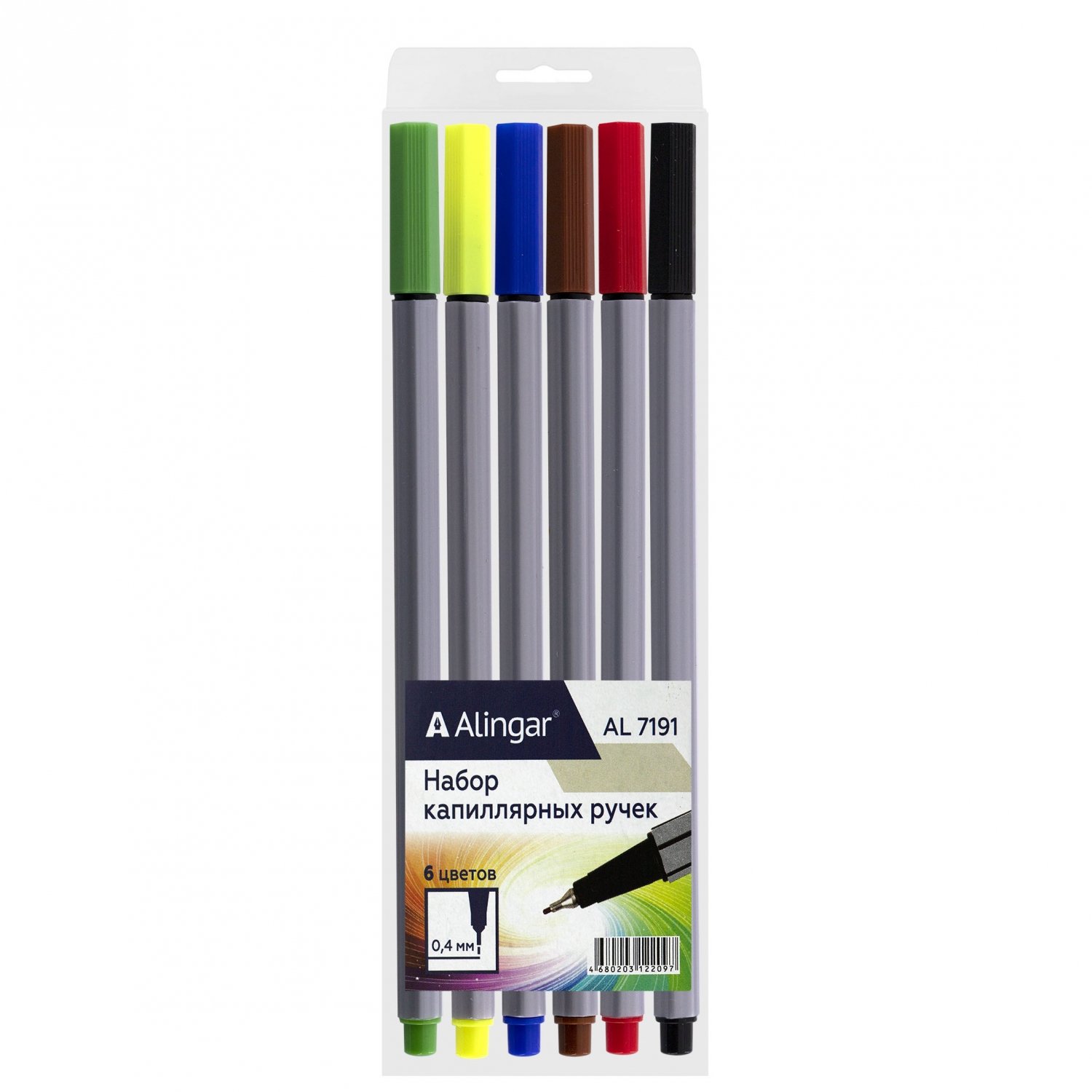 Набор капиллярных ручек Alingar, 6 цветов, 0,4 мм, шестигранный пластиковый серый корпус, ПВХ чехол, европодвес