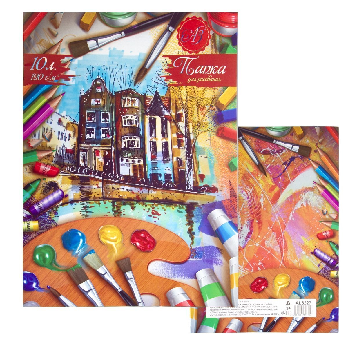 Папка для рисования А3 10л., Alingar, цветная обложка, 120 г/м2, "Акварельный город"