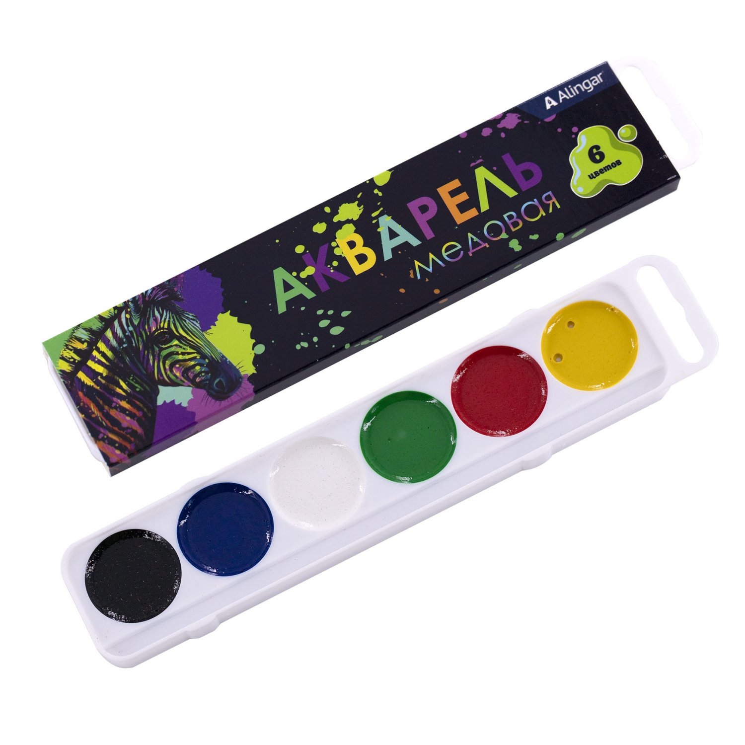 - Акварель Alingar , 6 цветов, без кисти - 1 шт.