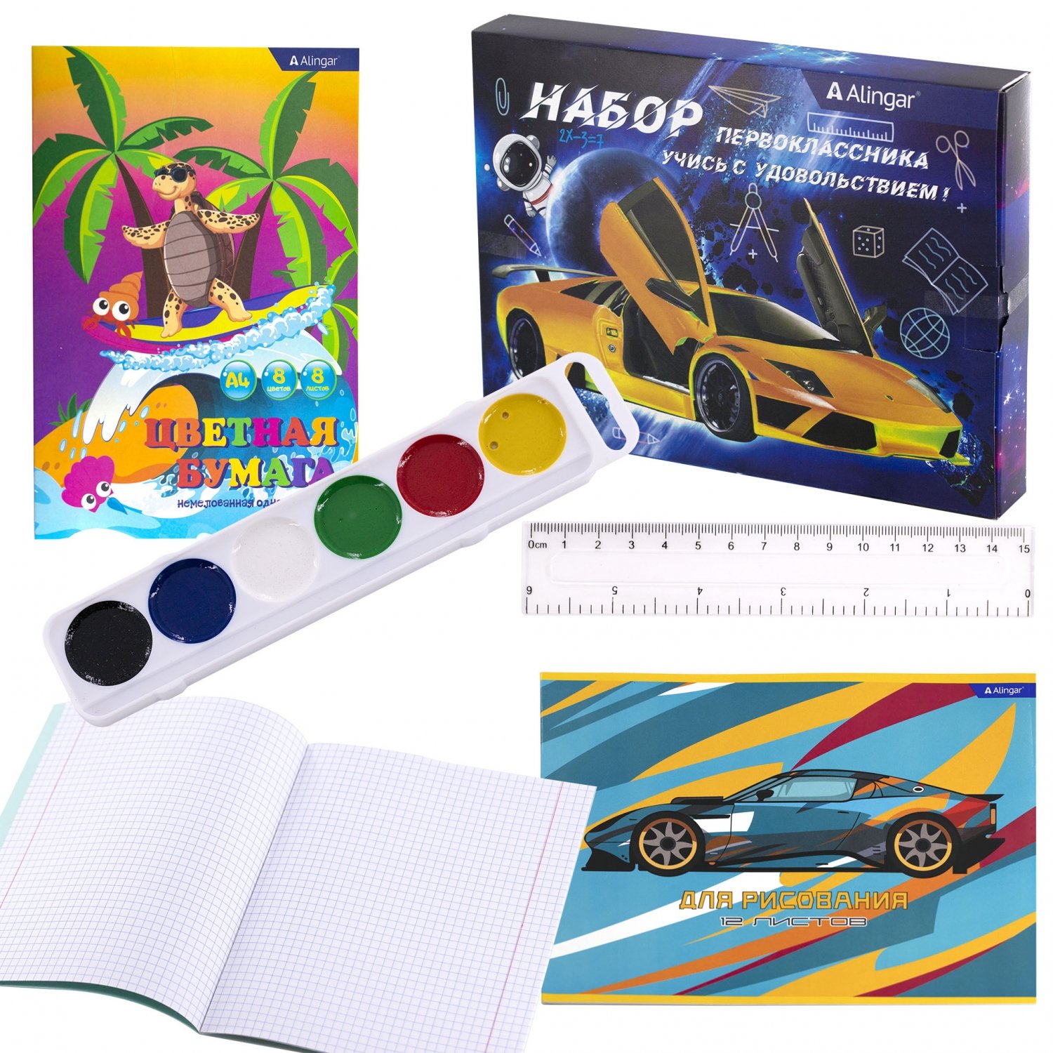 - Тетрадь Alingar , 12 листов, клетка, обложка офсет. бумага – 5 шт.