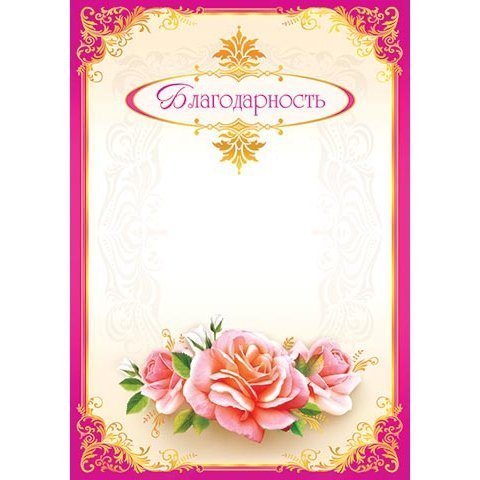 Благодарность, А4, 297*210 мм, Мир открыток розовая рамка, розы