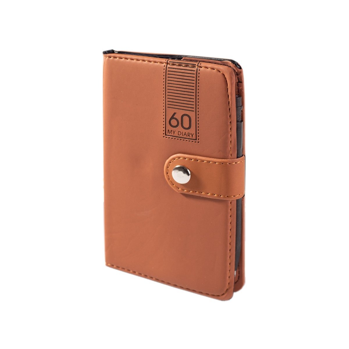 Бизнес-блокнот 8.3 см * 12,5 см, 7БЦ, Alingar, иск. кожа, клапан на кнопке, ручка, 70 л., клетка, коричневый