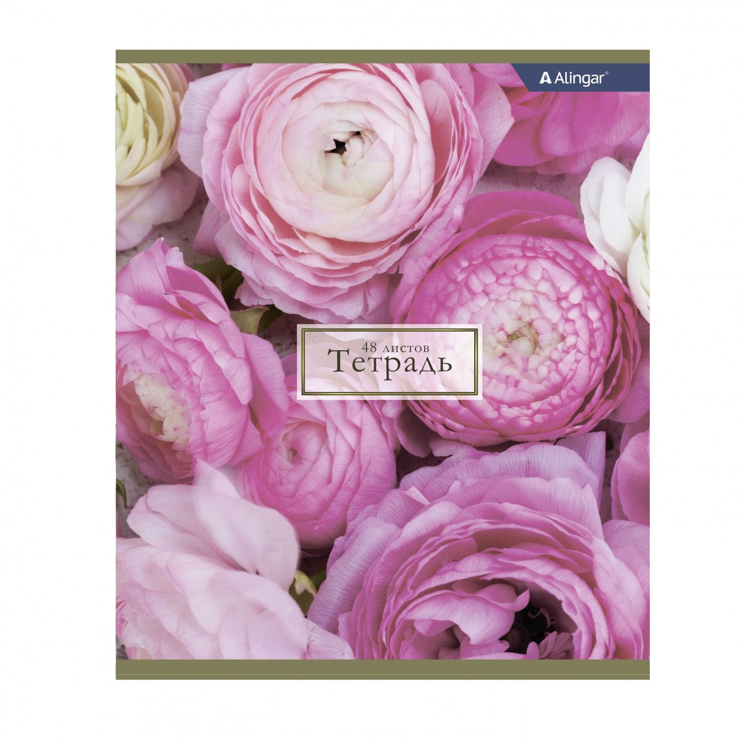 Тетрадь 48л., А5, клетка, Alingar "Нежные цветы", скрепка, мелованный картон (стандарт), блок офсет, 4 дизайна в пленке т/у