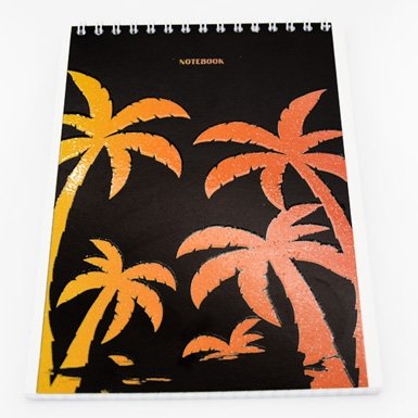 Блокнот А5, гребень, Апплика, мелованный картон, глиттер, 48 л., клетка, "Пальмы"
