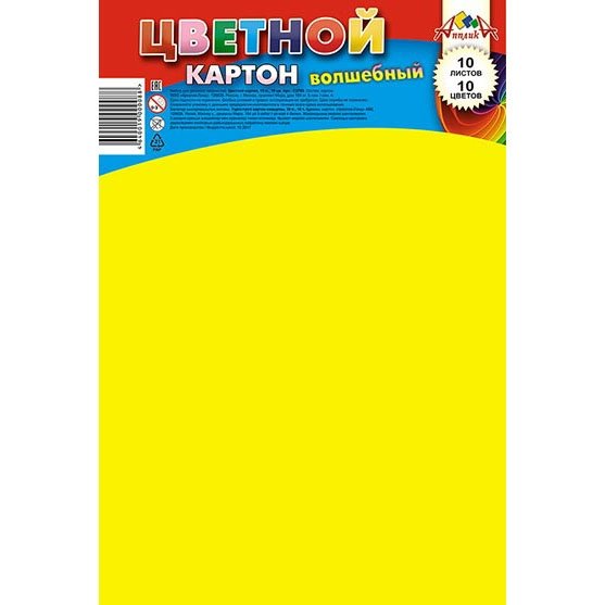 Картон цветной Апплика, А4, 10 листов 10 цветов, немелованный, волшебный, пакет, "Обечайка"