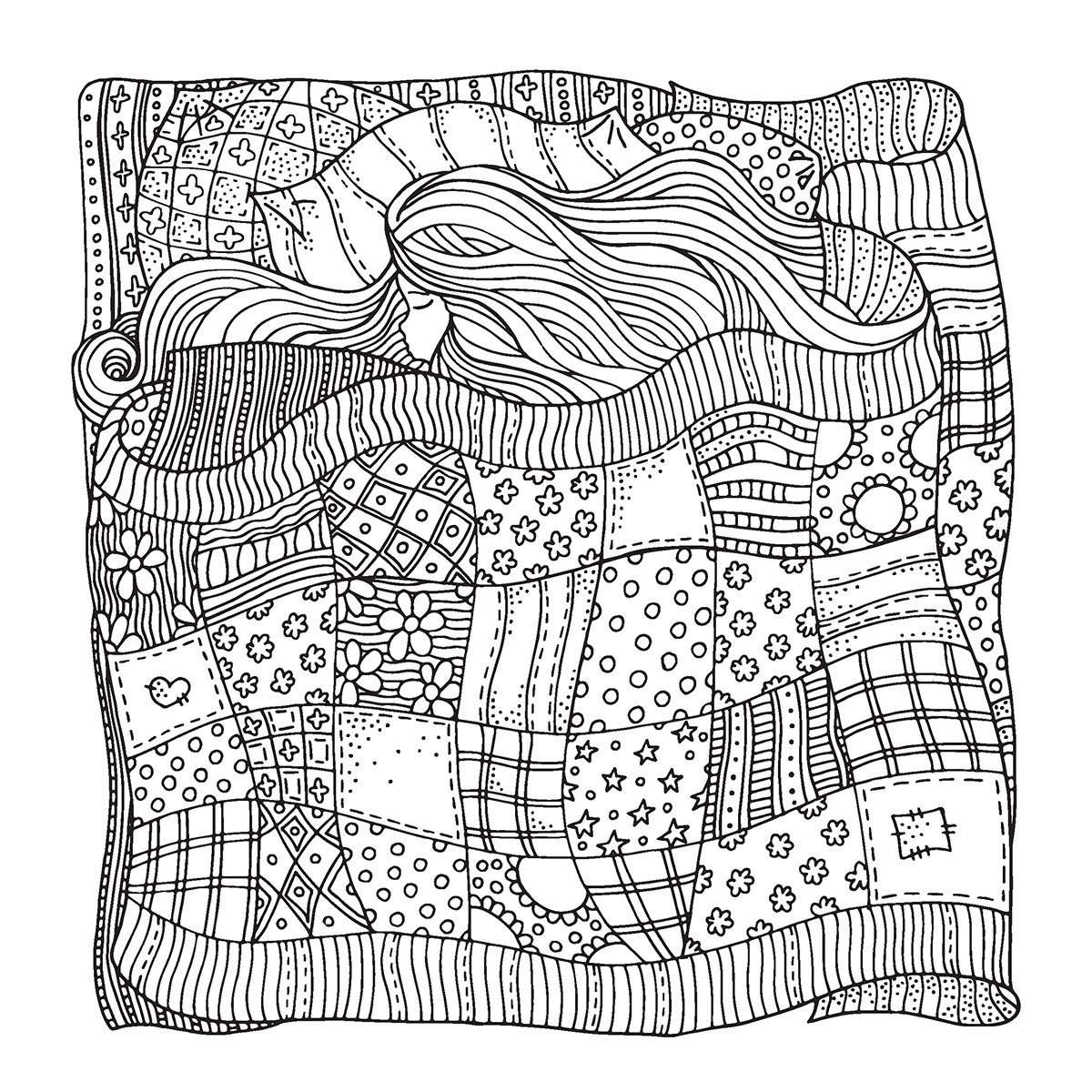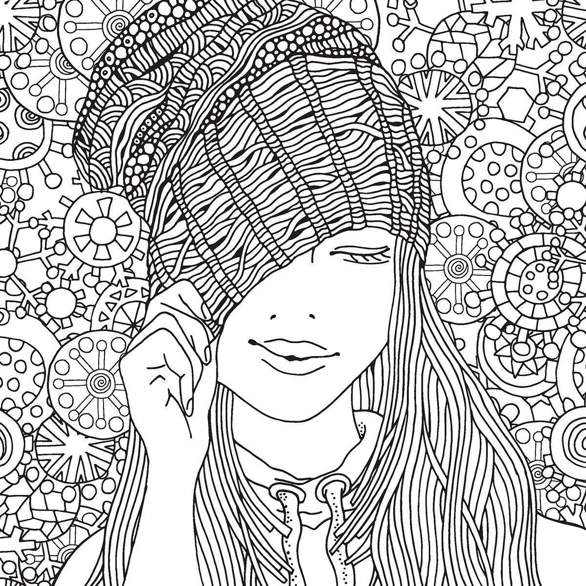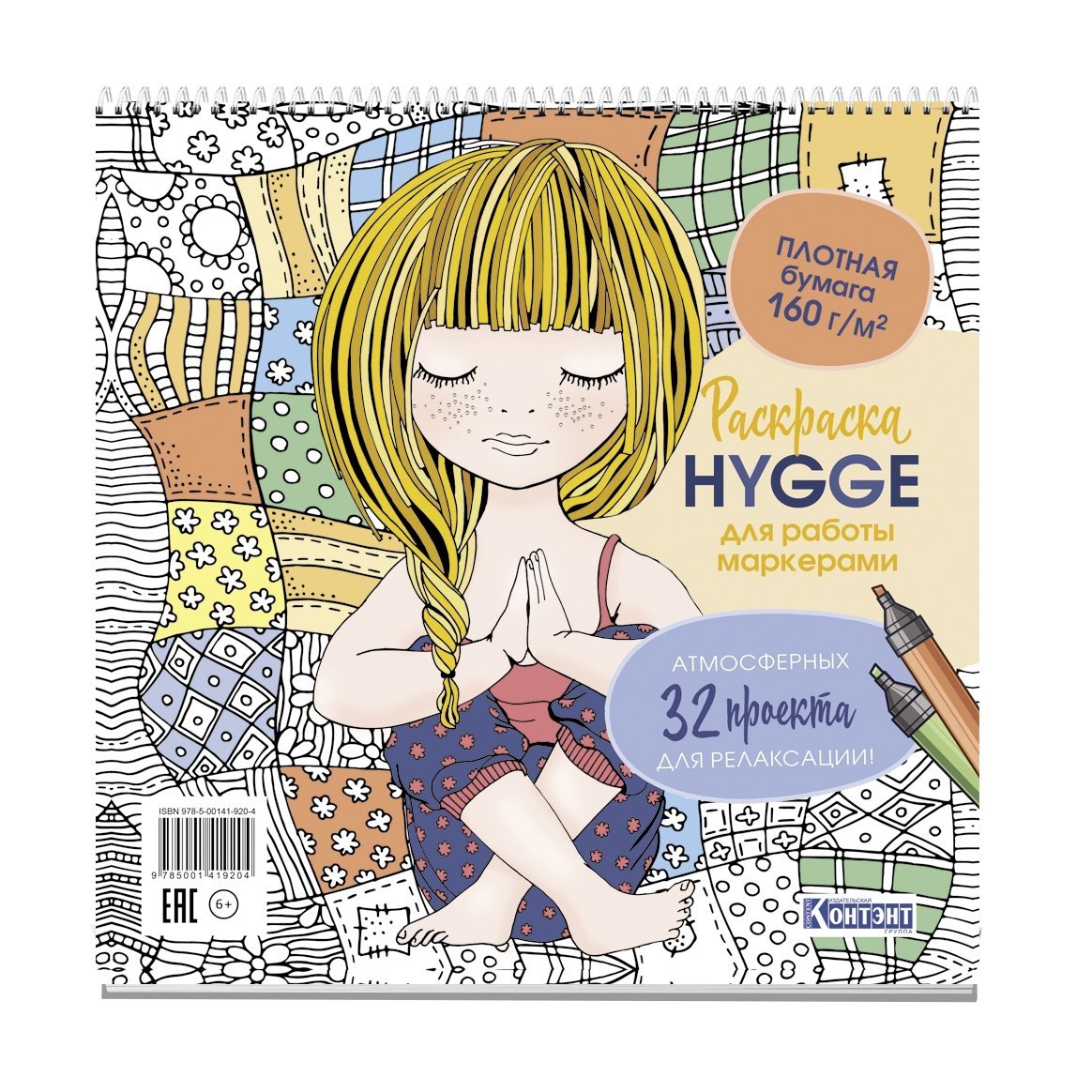 Скетч-раскраска для работы маркерами, 195 * 195 мм, Контэнт-Канц, 32л., гребень сверху, лам. карт., выб.лак, жёстк. подложка, "HYGGE. Девочка."